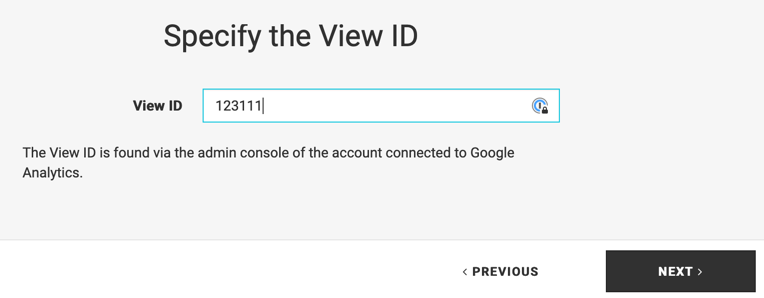 Specify the View ID and click Next. See the Find a View ID section below for more information about the View ID.
