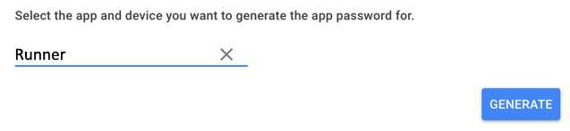 Zuar Runnerto identify the purpose of the App Password and click Generate.