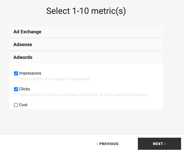 Use a third party tool (Google Analytics Dimensions and Metrics Explorer ) to determine the combinations of dimensions and metrics that work for your use case before you go through the Zuar Runner plugin wizard process.