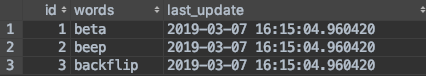 Notice Table A has 4 columns: id, words, places, and last_update.